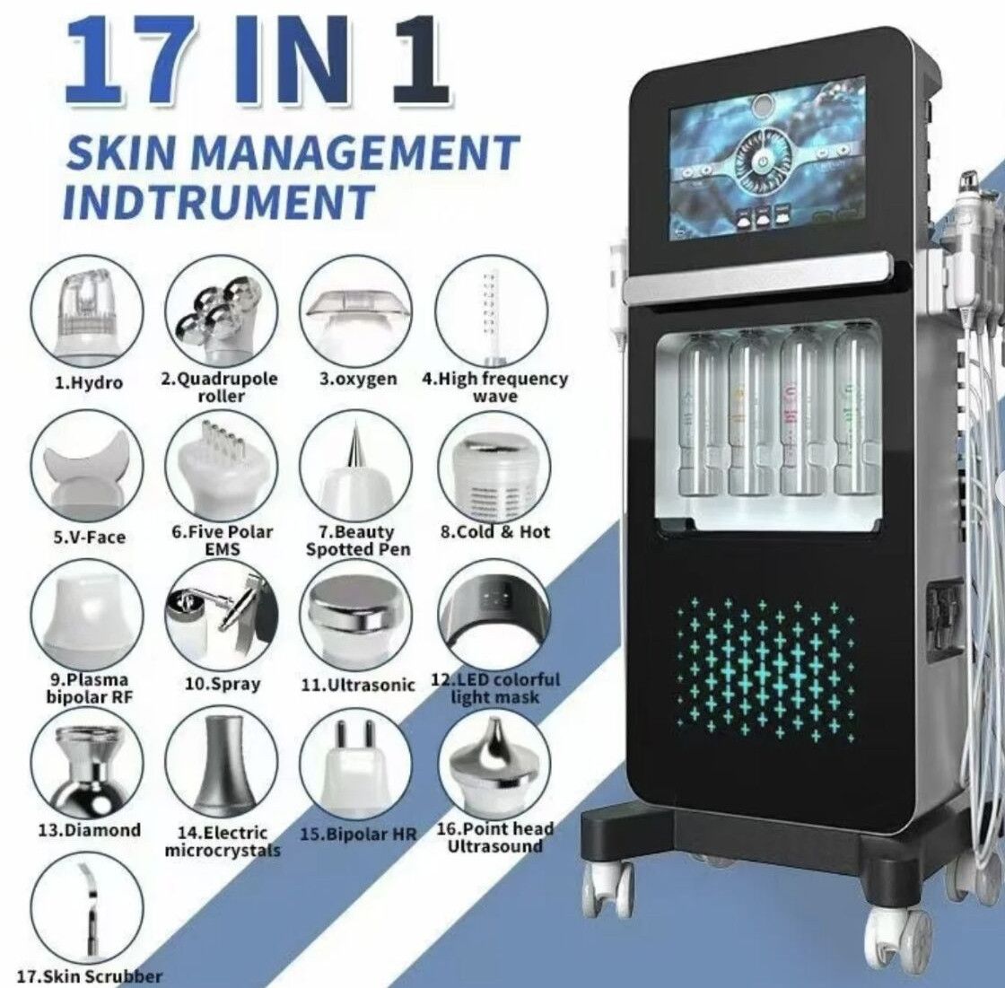 Discover the power of the 17-in-1 Alice Super Bubble HydraFacial Machine, a comprehensive skin treatment device designed to deliver exceptional skin cleansing, tightening, hydration, and rejuvenation. This advanced facial machine is ideal for professional use in clinics and spas, providing a wide array of functionalities to address diverse skin concerns effectively.